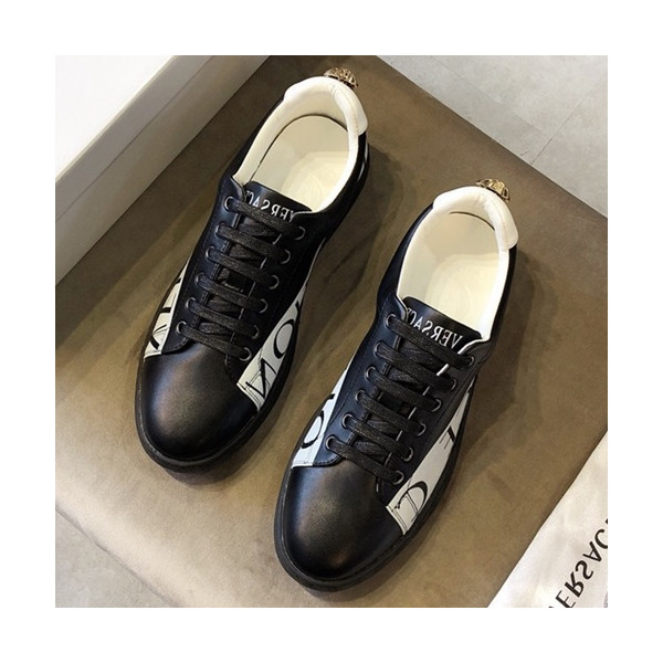 ✨Versace 2019 Mens Leather Sneakers - 베르사체 2019 남성용 레더 스니커즈 VERS0099.Size (240 - 270).블랙 요약정보 및 구매